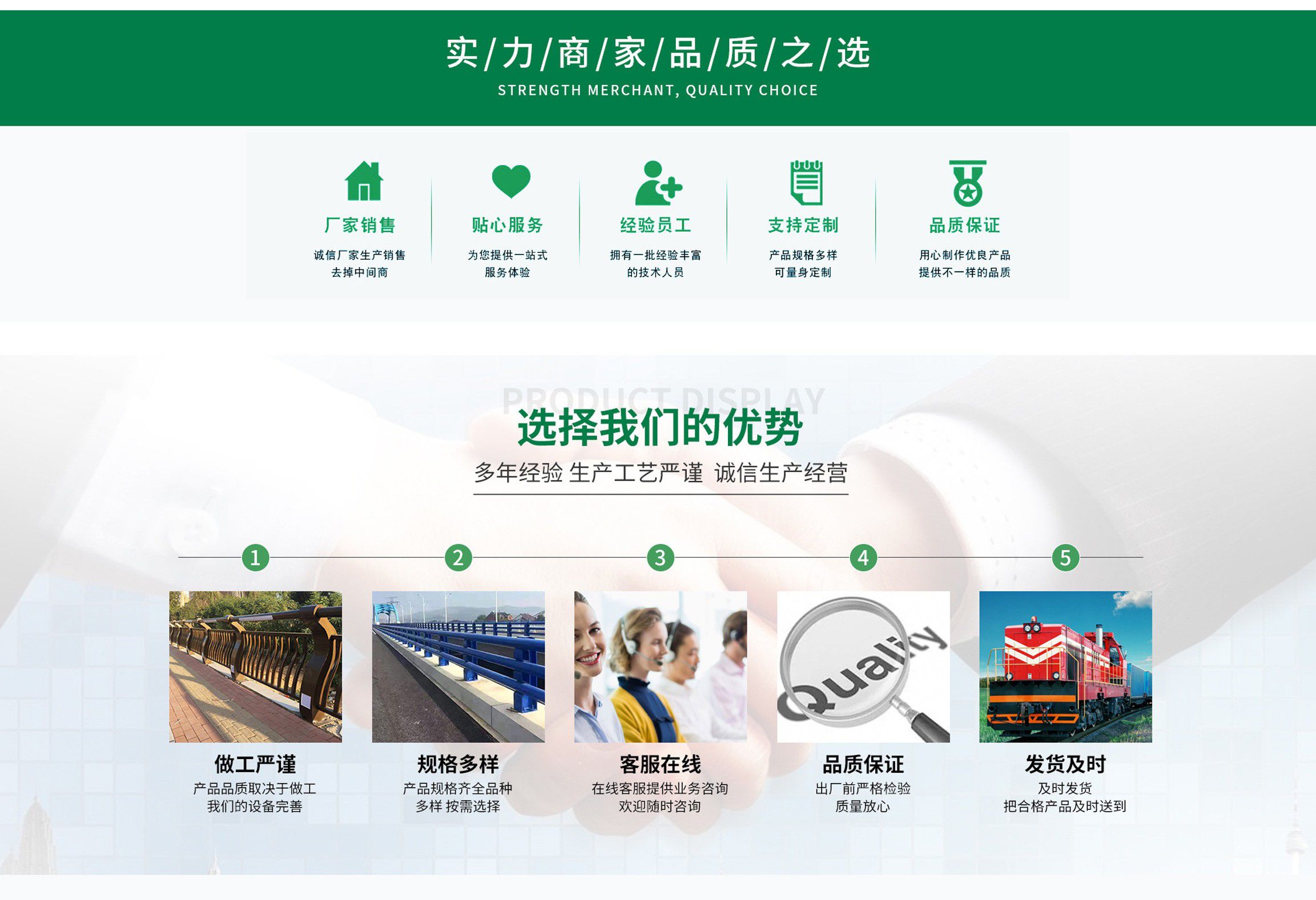 山東崇發(fā)金屬制品有限公司位于“江北水城“”之稱的聊城,地理位置優(yōu)越,交通方便。公司占地面積50000平方米,建有標(biāo)準(zhǔn)化廠房及辦公樓等配套設(shè)施,建筑面積30000平方米。  公司是一家設(shè)計、銷售、安裝為一體的護欄工程企業(yè),本公司主要生產(chǎn)各種燈光護欄,防撞護欄,橋梁護欄,鋁合金護欄,不銹鋼復(fù)合管護欄,河道護欄等。公司擁有先進的全自動激光切割設(shè)備和機器人焊接設(shè)備,能夠保證護欄產(chǎn)品的精度和表面光潔度。  公司優(yōu)勢一、專業(yè)性強1、設(shè)計、提供和安裝各種護欄工程。擁有護欄設(shè)計、銷售與安裝為一體的完整體系。  2、應(yīng)用領(lǐng)域:防撞護欄、橋梁護欄、河道護欄、燈光護欄、道路護欄等。  二、價格優(yōu)勢公司擁有獨立的生產(chǎn)車間,無論管材還是立柱鋼板及表面處理都可在本公司內(nèi)自行加工完成,減少中間環(huán)節(jié),給客戶提供合理的價格,優(yōu)質(zhì)的產(chǎn)品。  我們將始終堅持“開拓國際市場,信譽就是效益”的經(jīng)營理念,憑借一批思想統(tǒng)一、團結(jié)拼搏、業(yè)務(wù)熟練、對客戶高度負(fù)責(zé)的團隊力量,與廣大客戶攜手共進,合作雙贏,一起迎接明天的輝煌!...
